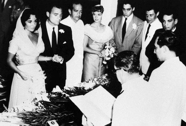 Elizabeth Taylor and Mike Todd wed at a 1957 ceremony in Mexico, with Debbie Reynolds and Eddie Fisher looking on.