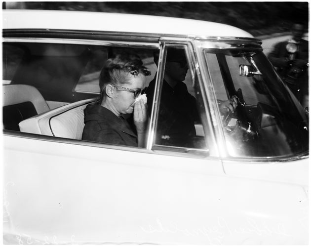 Debbie Reynolds and Eddie Fisher leave Elizabeth Taylor’s home after Michael Todd’s death.