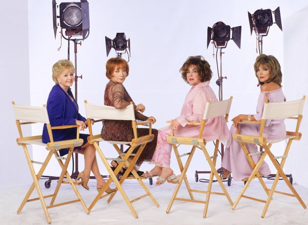 Debbie Reynolds, Shirley MacLaine, Elizabeth Taylor and Joan Collins pose for a “These Old Broads” promotional photo.